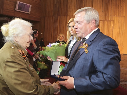 В честь 69-й годовщины Великой Победы 11 ветеранов-фронтовиков из разных городов и районов Ростовской области были отмечены знаком губернатора "За ратную службу". В числе тех, кто во время областного торжественного собрания в Ростовском музыкальном театре получил из рук Василия Голубева этот знак, была и шахтинка Татьяна Столярова.