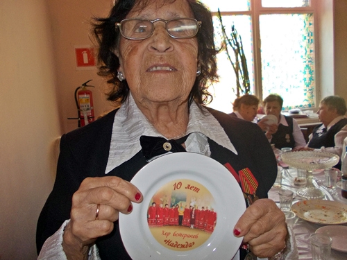Двойными именинницами чувствовали себя в этот день певуньи из хора ветеранов 'Надежда' во главе с неизменной старостой хора Надеждой Макаровой. Они приурочили к общему празднику празднование 10-летия своего коллектива. Что за чудесные подарки им дарили! Сувенирные тарелочки с фотографией хора для каждой участницы - от Ирины Жуковой. Магнитофон - от председателя Объединения предпринимателей города Шахты Аркадия Гершмана. Большущий именной именинный торт - от Ольги Поздняковой.