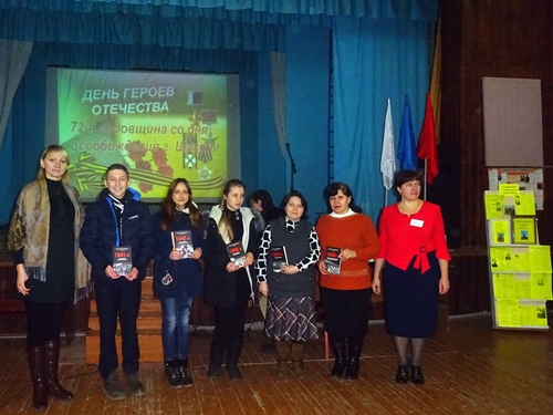 В день освобождения города Шахты от немецко-фашистских захватчиков в зале клуба им. Л. Красина при поддержке председателя городской Думы депутата по 17 избирательному округу Ирины Жуковой прошла тематическая викторина, в которой приняли участие учащиеся школ N22 и N27. Победители викторины - Елена Тищенко и Елена Токарь из школы N27, Артем Дорохин из школы N22 - получили в подарок книги И. Б. Мощанского "1941-1945 годы".
