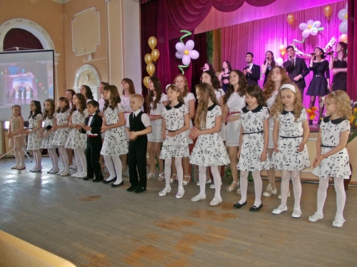 А старшие, прощаясь с коллективом и со сценой Дома детского творчества, знакомой до каждой щербинки в половицах, признавались в любви собственным мамам и своей наставнице. Родительский комитет преподнёс Ольге Георгиевне Прынь благодарственное письмо, а выросшие её дети - медаль с надписью "Лучшая учительница в мире" и почётный диплом, подтверждающий, что Ольга Георгиевна - лучший педагог города по вокалу. "Живите ярко, дерзко, насыщенно! - напутствовала она своих выпускников.