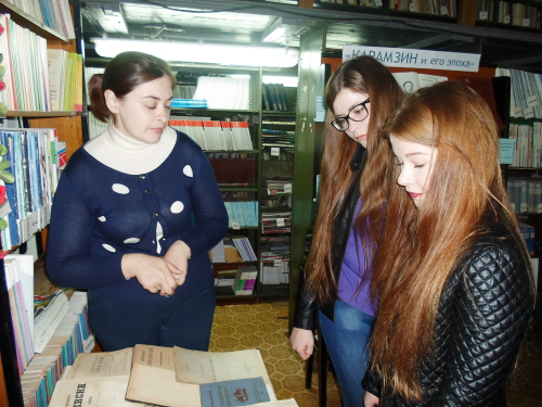 Вторая выставка была посвящена старинным книгам. Галина Куштель представила книги из своей личной коллекции. Здесь были собраны книги разных лет издания и форматов, самая маленькая – миниатюрный томик М.Ю. Лермонтова, умещающийся на ладошке и самый большой, увесистый фолиант с обложкой из пергамента - труд по истории «Европейский театр» 1703 года издания, написанный на немецком языке и украшенный чёрно-белыми иллюстрациями.