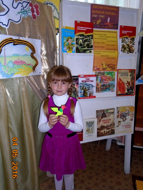 Дети ознакомились с книжной выставкой «Листая страницы Великой Победы» и приняли участие в создании плаката-поздравления для ветеранов Великой Отечественной войны.