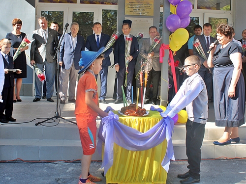 После традиционного перерезания красной ленточки и символического первого звонка гости вместе с хозяевами вошли в школу. Свежеотремонтированные коридоры и классы, музей Героя Советского Союза Ивана Константиновича Мирошникова, имя которого носит школа, столовая с кухней, актовый зал и, в особенности, зал спортивный, конечно же, впечатляют. Остались некоторые недоделки на задах школьного здания с благоустройством и коммуникациями, но они, как уверяют, будут устранены в ближайшие дни и никак не помешают учебному процессу.