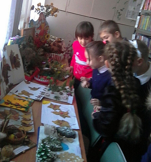 Ну, а ученики младших классов вместе с Ольгой Евгеньевой организовали в самый канун зимы прощание с осенью. Для выставки "Прощай, золотая осень" ребята подготовили поделки из природных материалов. Ребячьей фантазии не было предела: в ход пошли шишки, орехи, листья, цветы, каштаны, даже грибы и семечки. Победителей, конечно же, назовут, вот только выбрать их будет не так уж просто.