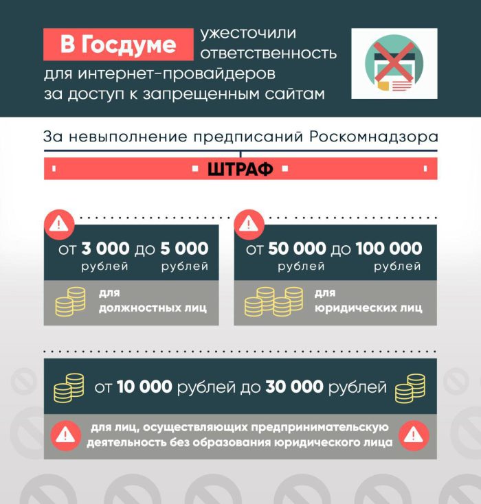 Госдума одобрила во втором чтении проект о штрафах для интернет-провайдеров за доступ к запрещенным сайтам |