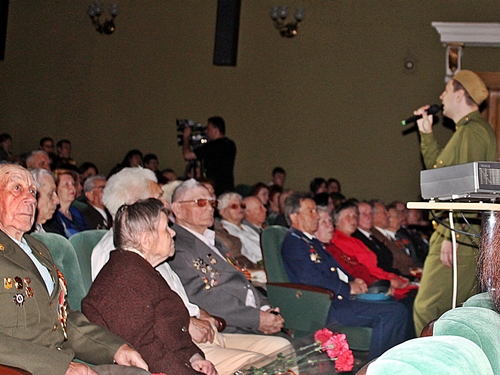 По традиции в канун Дня Победы в городском театре собрались ветераны Великой Отечественной - фронтовики и те, кто ковал победу в тылу. Их осталось совсем немного, ещё меньше тех из них, кто по состоянию здоровья смог прийти на торжество. Каждого у входа встречали, провожали на лучшие места, молодёжь подходила с просьбами сфотографироваться вместе с ветеранами-орденоносцами.