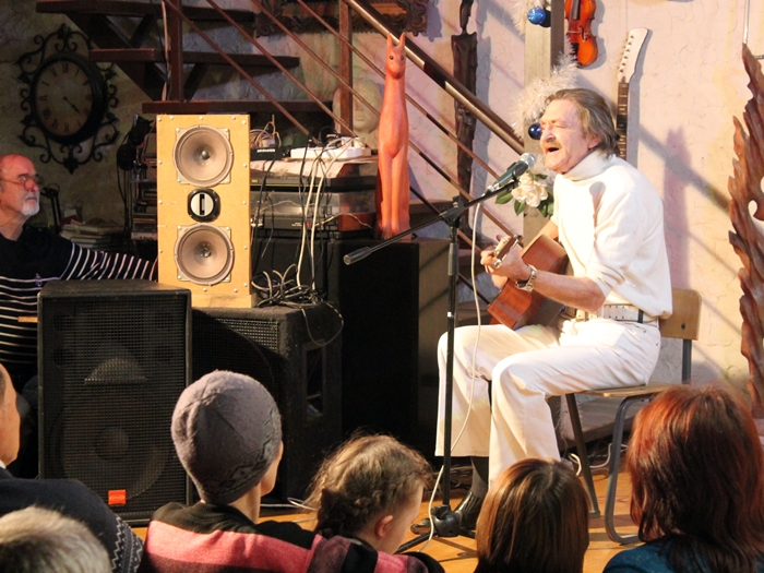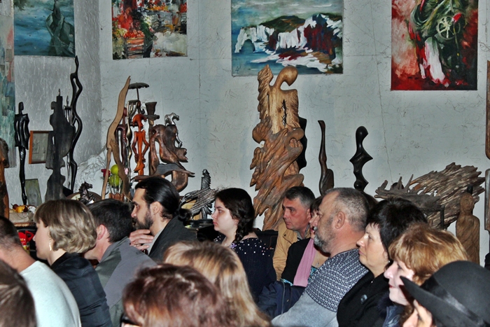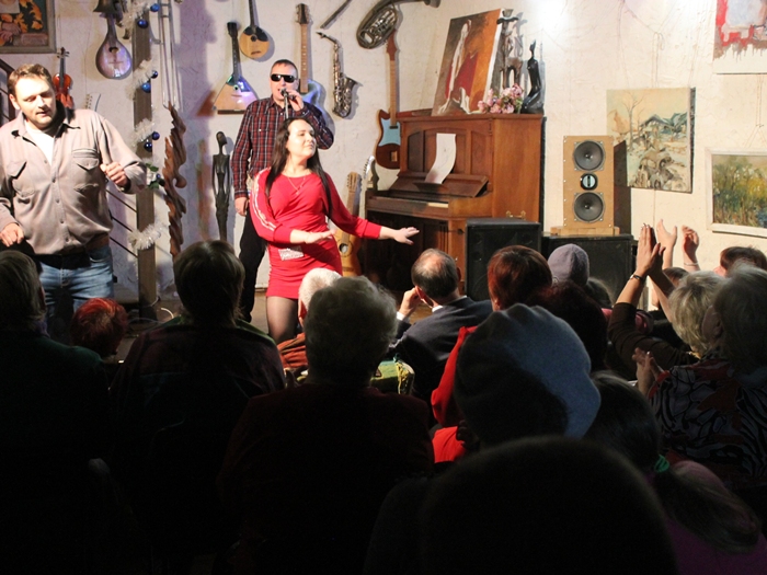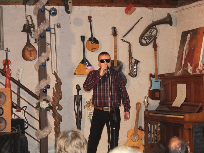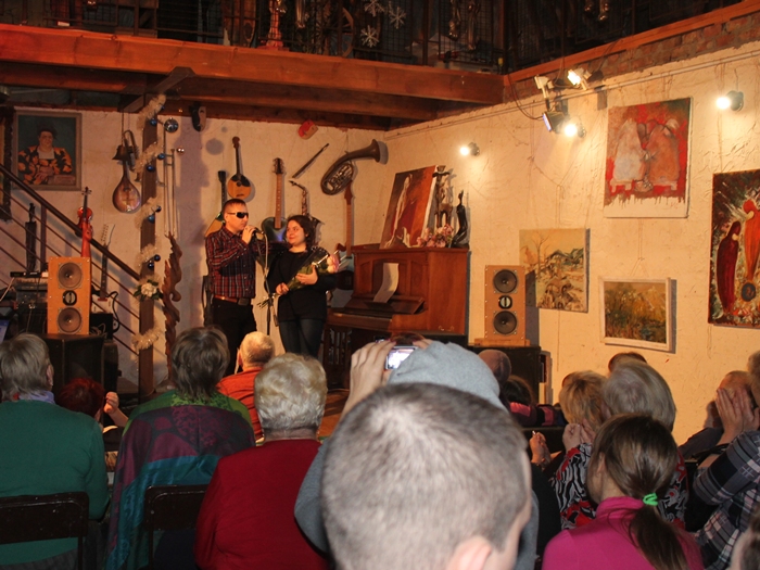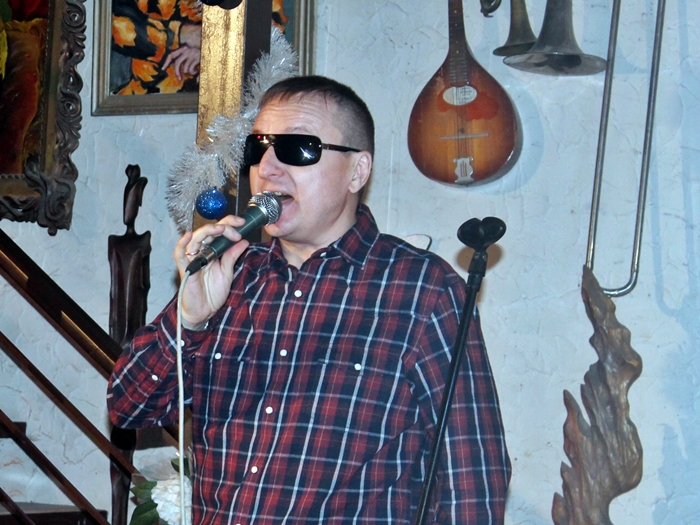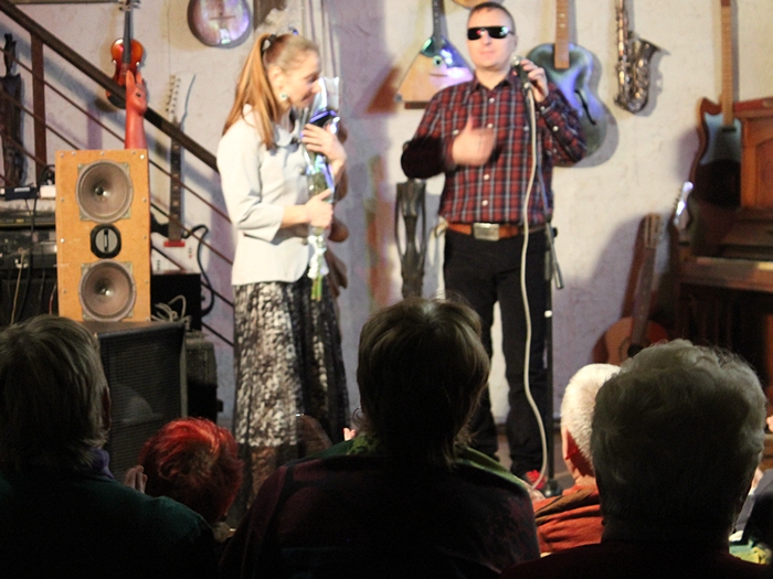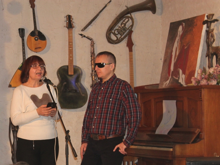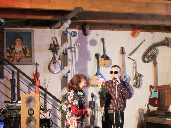 Субботним вечером в арт-салоне Владимира и Виктории Роговых яблоку негде было упасть - столько людей собралось на концерт шахтинского слепого певца Виктора Тартанова, что все сидели плотно-плотно и не всем хватило мест.