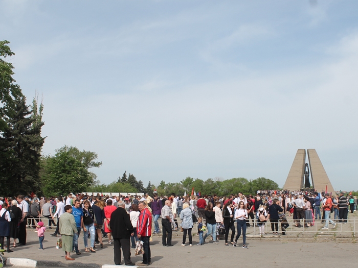 Как всегда многолюдным был сегодня митинг у мемориального комплекса "Жертвам фашизма". Нескончаемой казалась колонна во главе с воспитанниками Шахтинского Я.П. Бакланова казачьего кадетского корпуса, спустившаяся от площади красинского клуба к мемориалу.