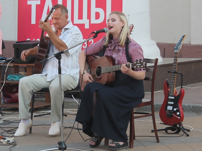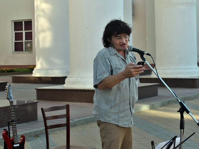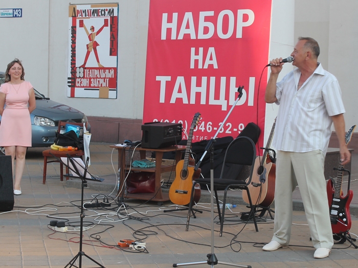 Стихи и песни звучали и под стенами городского театра. Известный шахтинский музыкант, автор и исполнитель музыки и песен Пётр Меркулов продолжил традицию, начатую два года назад, когда они с женой Татьяной впервые организовали здесь концерт, посвящённый Дню семьи, любви и верности. Тот, первый концерт, был сольным, а на сей раз Пётр Меркулов привлёк к выступлению друзей — поэтов и музыкантов, и своих учеников.