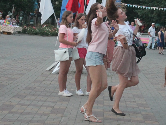 Позже эта выставка переместилась на улицу Шевченко ко входу в Александровский парк. Там у фонтана развлекали ребятишек аниматоры, а шахтинские поэты читали стихи о любви.