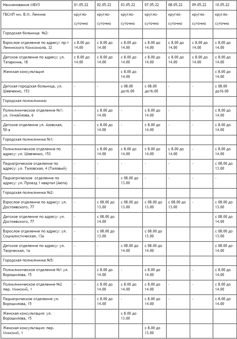 Как будут работать медучреждения в Шахтах в предстоящие выходные и праздничные дни.
