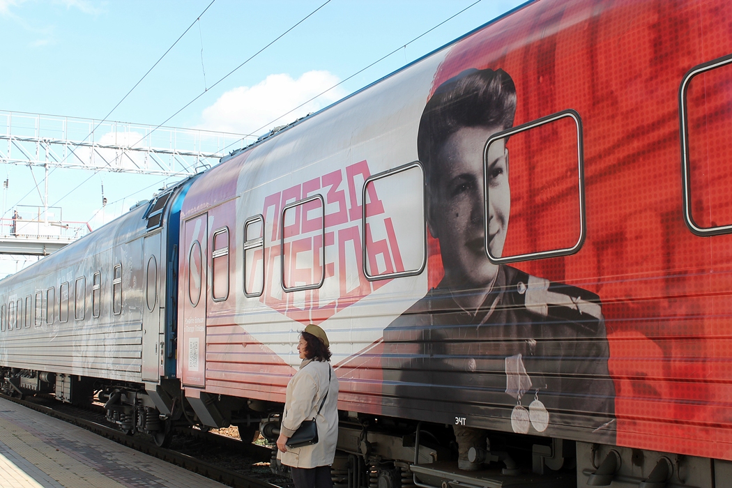 История Великой Отечественной войны в "Поезде Победы" отображена с помощью больше чем 150 скульптур, прообразами для которых послужили фотографии реальных людей. Технологии дополненной реальности, объёмный звук и театральное освещение помогают создавать эффект присутствия. С момента своего запуска в октябре 2020 года "Поезд Победы" преодолел уже более 103 тысяч километров, сделал остановки в 119 городах России и Белоруссии, по его музейным вагонам прошли больше 448 тысяч человек.