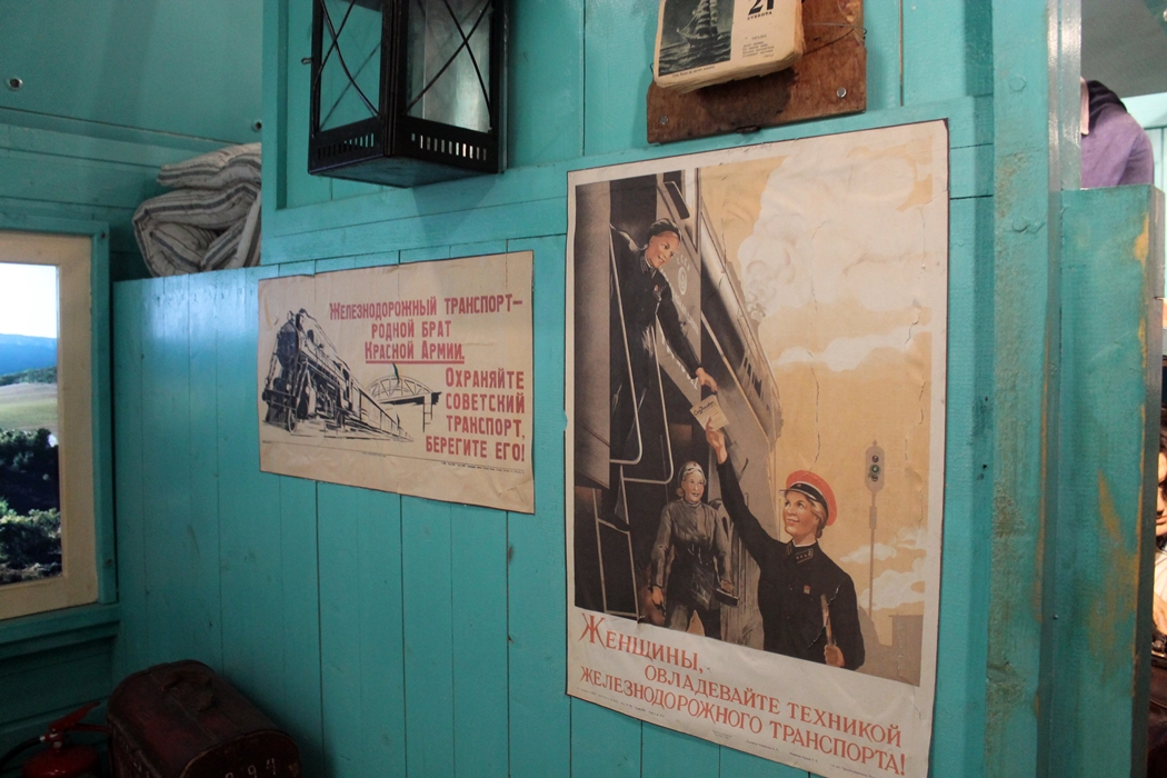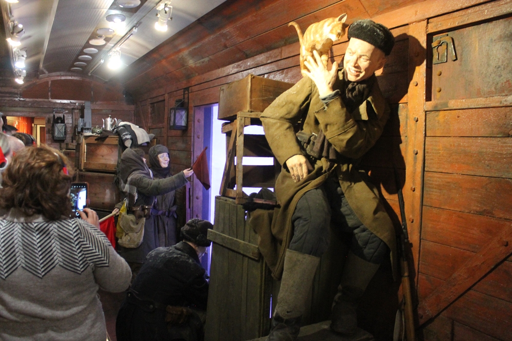 Небольшие экскурсионные группы, по 12-14 человек, переходя из вагона в вагон как бы наблюдают живые сцены из времён Великой Отечественной. Слышен стук колёс, за окнами проплывают движущиеся пейзажи из военной жизни и порой кажется, что сам поезд, стоящий на первом пути, пришёл в движение. А в это время в наушниках звучит рассказ от лица девушки-машиниста Лидии, воспоминания которой связывают воедино все элементы экспозиции.