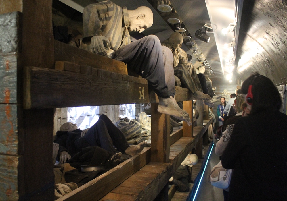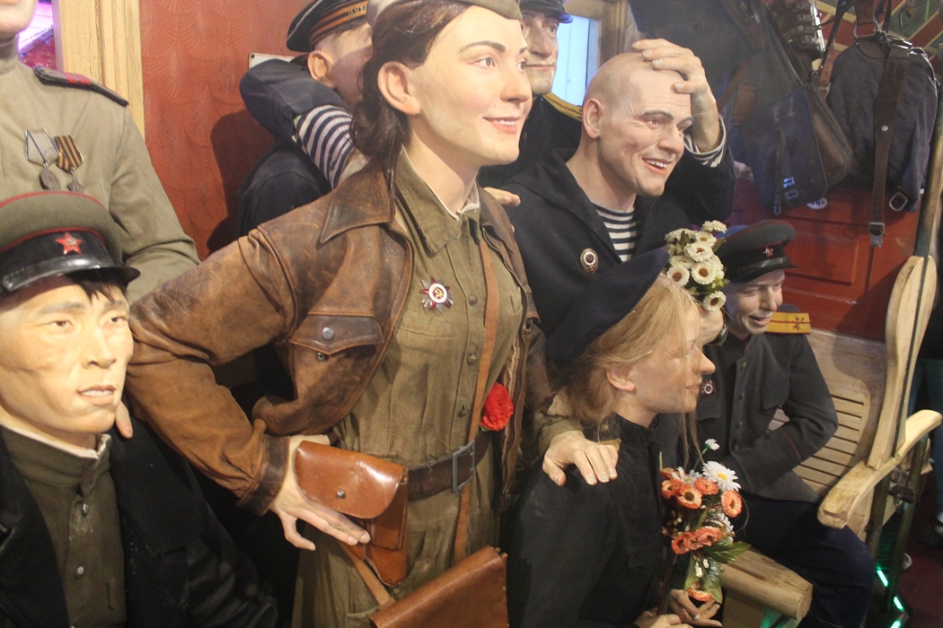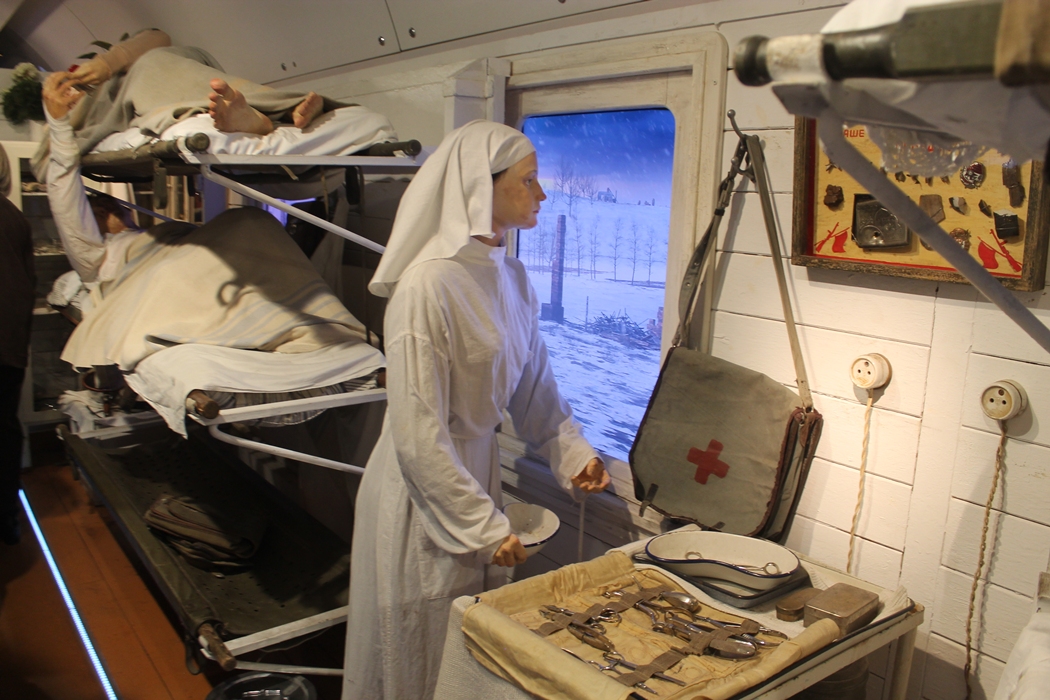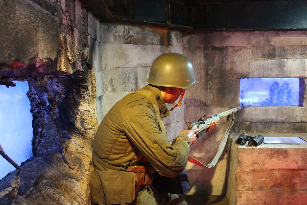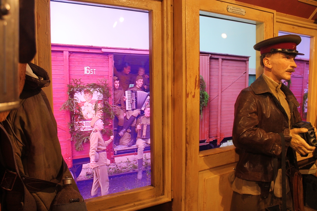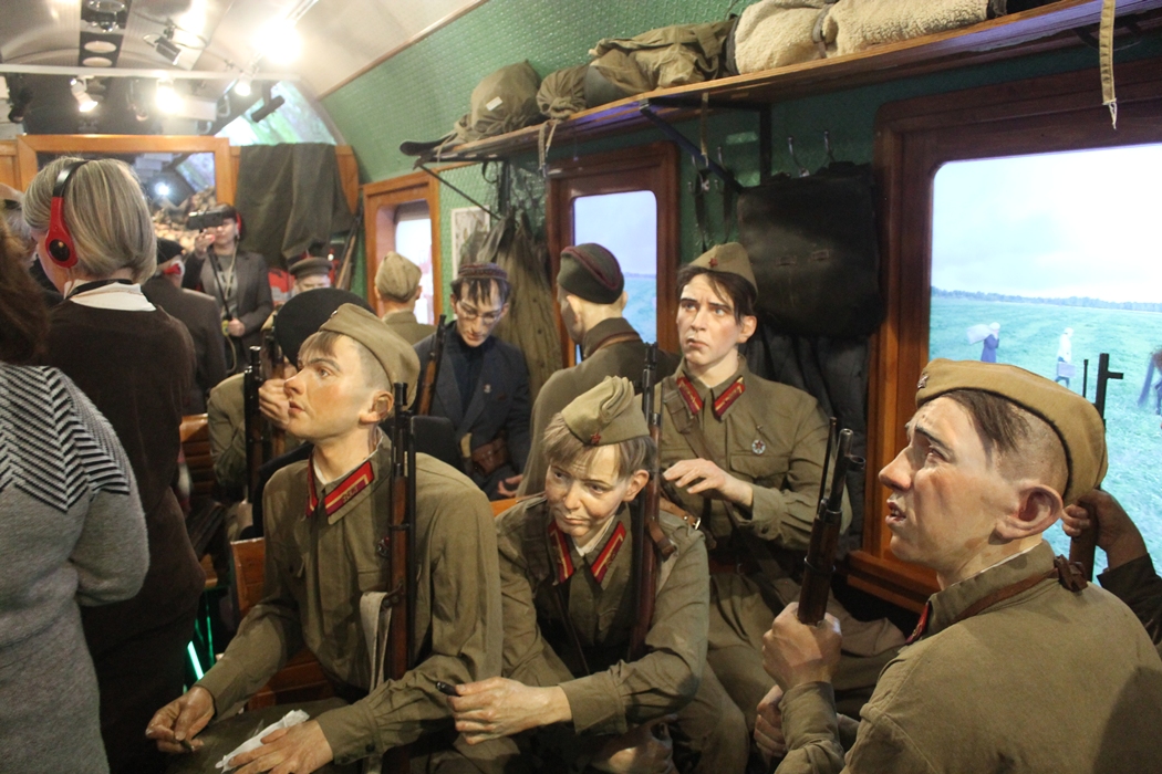 Здесь представлены эпизоды обороны Брестской крепости и Ленинградской блокады. Можно как наяву увидеть барак немецкого концлагеря. Есть вагон санитарного поезда, вагон-баня, штабной вагон. И есть вагон, куда пускают только взрослых и запрещают фотографировать, там размещены экспонаты, показывающие современное возрождение фашизма на Украине.