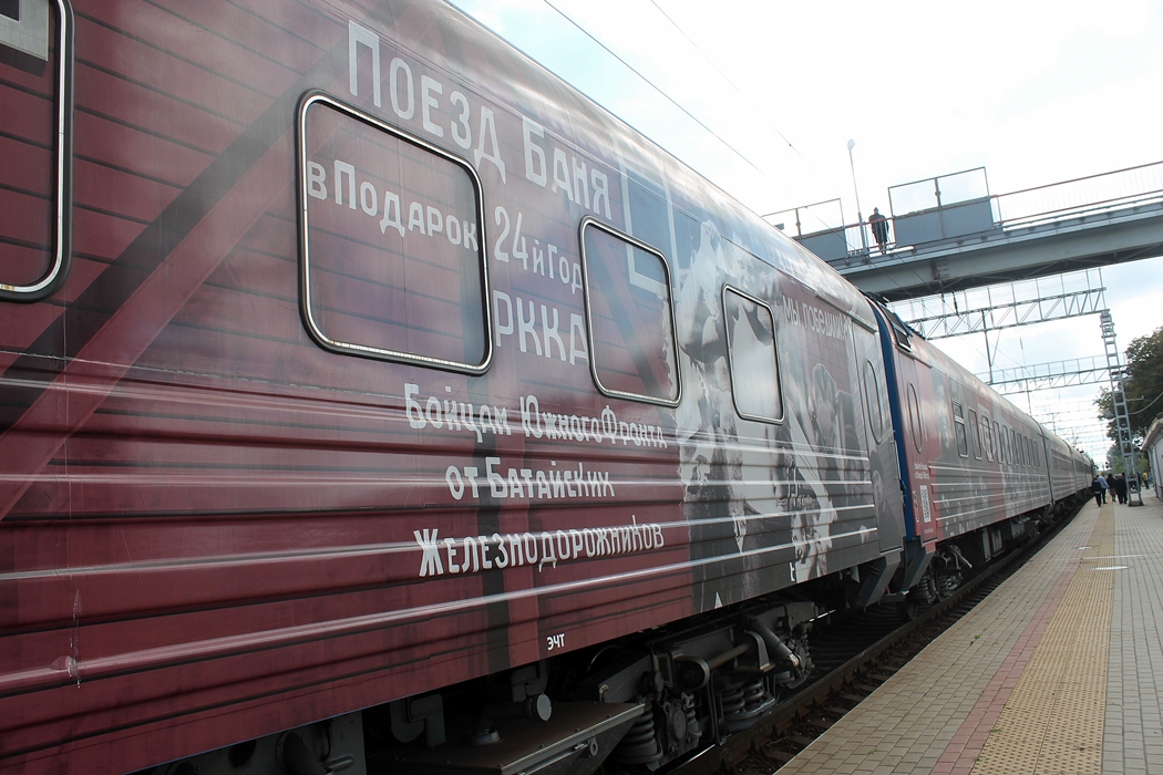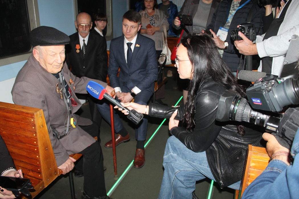 Сегодня шахтинцы, в первую очередь - школьники, смогли посетить необычную музейную экспозицию. В Шахты прибыл "Поезд победы" - это первая в мире иммерсивная выставка в подвижном составе общей площадью свыше 400 квадратных метров. В каждом из девяти выставочных вагонов своя инсталляция, которая отражает события военных лет, судьбы и воспоминания людей.