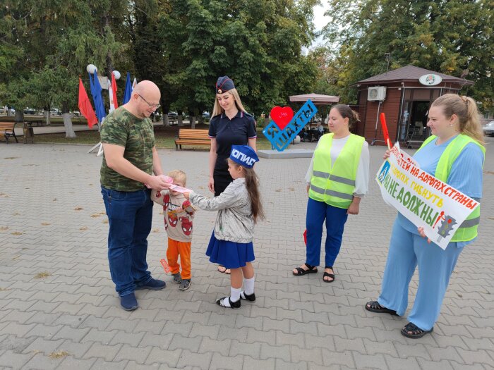 Для снижения количества ДТП с участием детей-пешеходов в тёмное время суток была организована акция по предупреждению детского дорожно-транспортного травматизма "Детям - безопасные дороги!". Её участниками стали командир отдельного взвода ДПС Госавтоинспекции УМВД России по городу Шахты капитан полиции Алексей Смирнов и ребята команды юных помощников инспекторов движения детского сада N56. Малыши вышли на улицу с буклетами и стихами: "Родителям мы предлагаем детишек своих защитить, для темного времени суток одежду детей изменить. Чтоб были видны на дорогах и чтоб не пришлось им страдать, отражайтесь в темноте, будете заметными везде! И тогда любой водитель вас обязательно увидит".