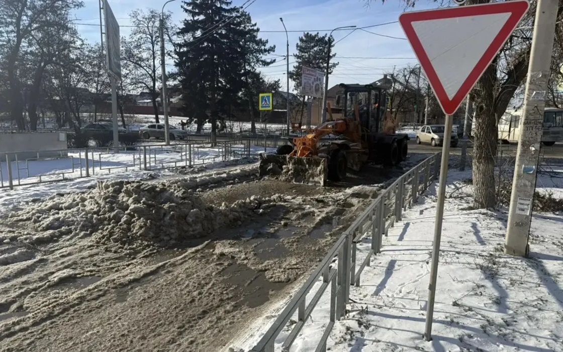 С 16 по 19 января тяжёлая техника работала на улицах Красинской, Дачной, Баррикадной, Аксайской, Подбельского, Садовой, в переулке Луговом, на Пролетарском кругу. Сегодня техника расчищала лёд на Комиссаровском-Ионова, Платова, Победа Революции-Крутой Спуск. Об этом сообщили в администрации города. Добавив при этом, что "силы направлены на взаимодействие с ГУП РО "УРСВ" по ликвидации аварий на сетях водоснабжения и водоотведения, последствиями которых становится намерзание жидкости на дороге".